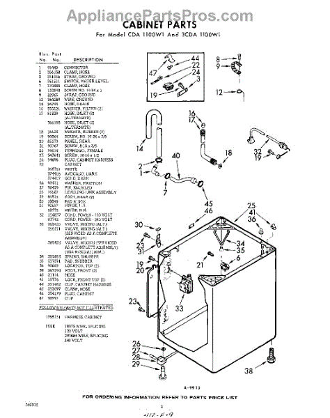 Parts for Whirlpool CDA1100W1: 02 - Cabinet Parts