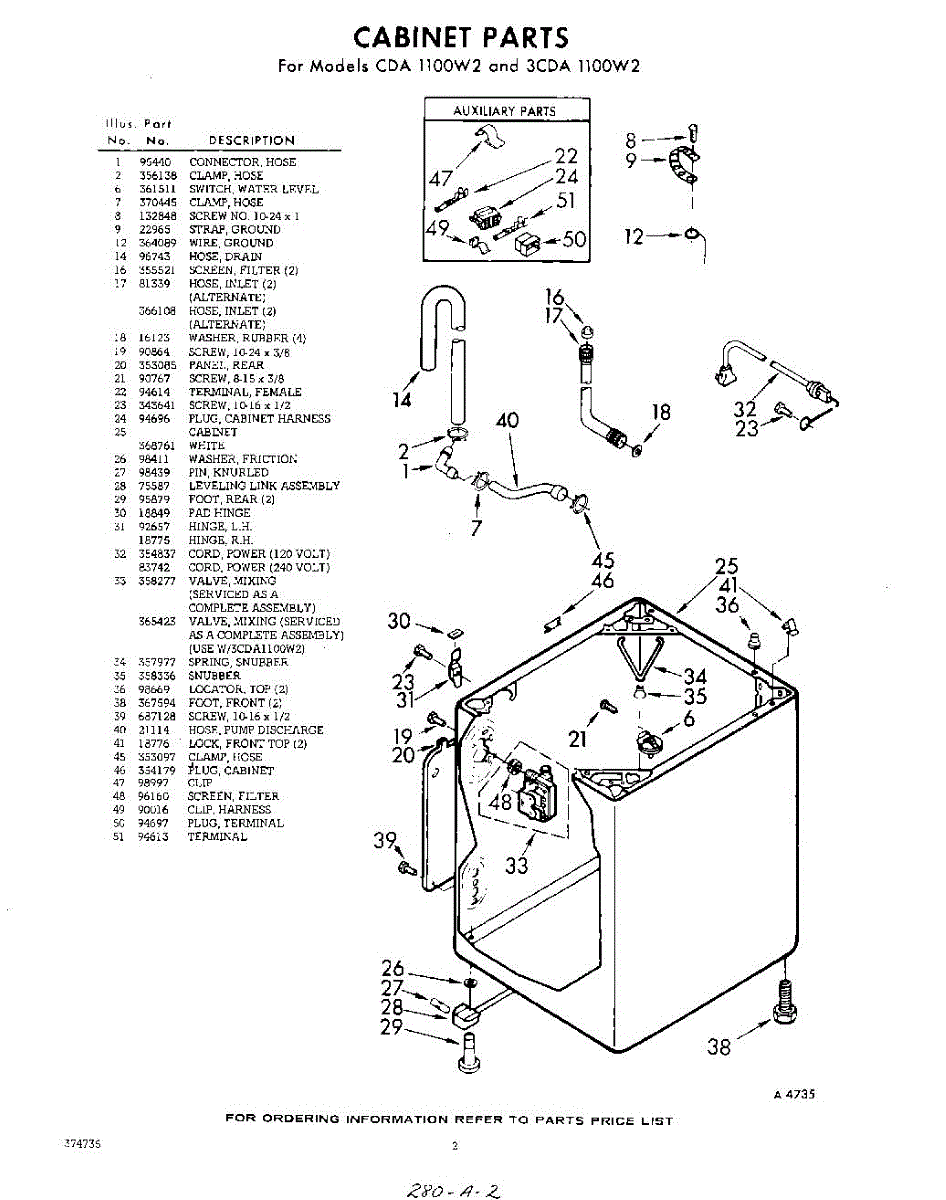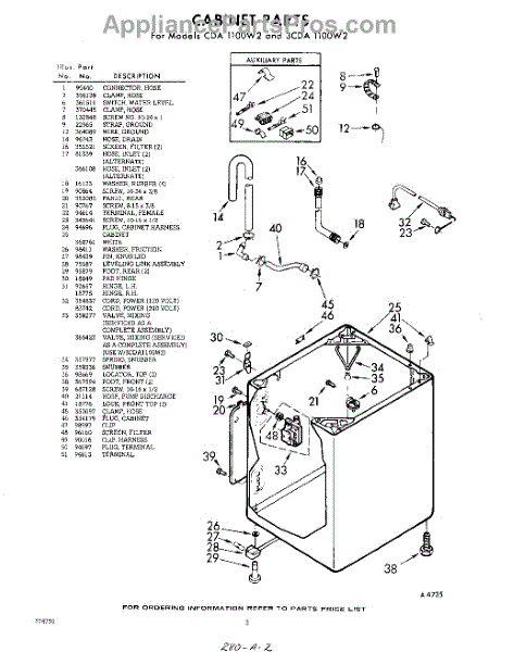 Parts for Whirlpool CDA1100W2: 02 - Cabinet Parts