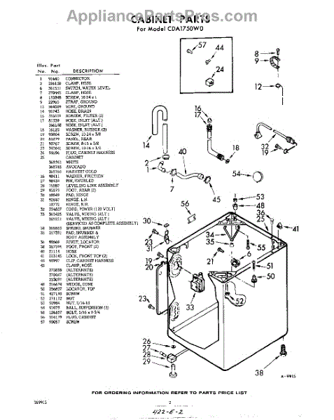 Parts for Whirlpool CDA1750W0: 02 - Cabinet Parts