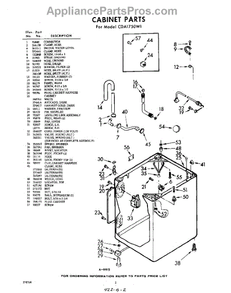 Parts for Whirlpool CDA1750W1: 02 - Cabinet Parts