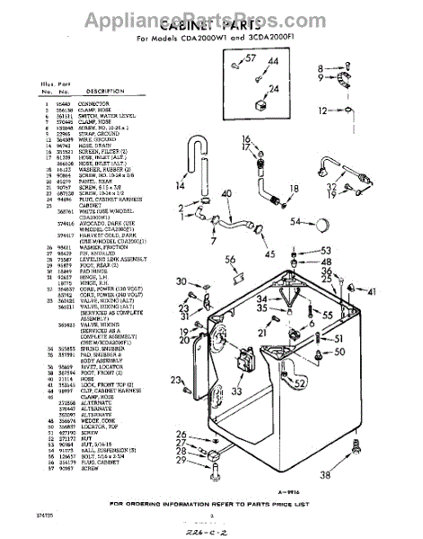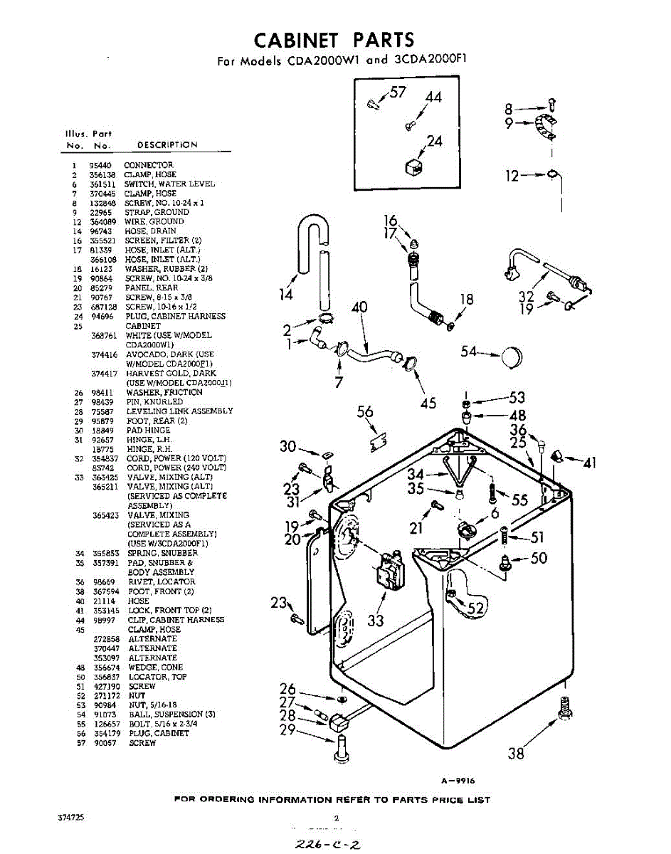 Parts for Whirlpool CDA2000W1: 02 - Cabinet Parts