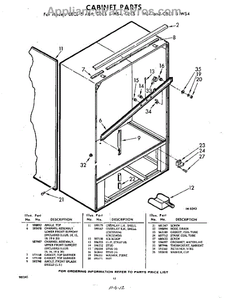 Parts for Whirlpool CECS5AS4: 12 - Cabinet Parts