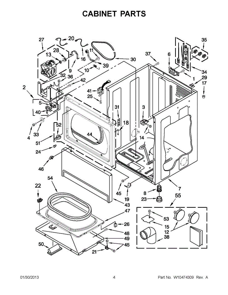 Cabinet housing for dryers. This outer shell encases internal components. Replace if cracked, rusted, dented, or structurally damaged from impact or wear.
