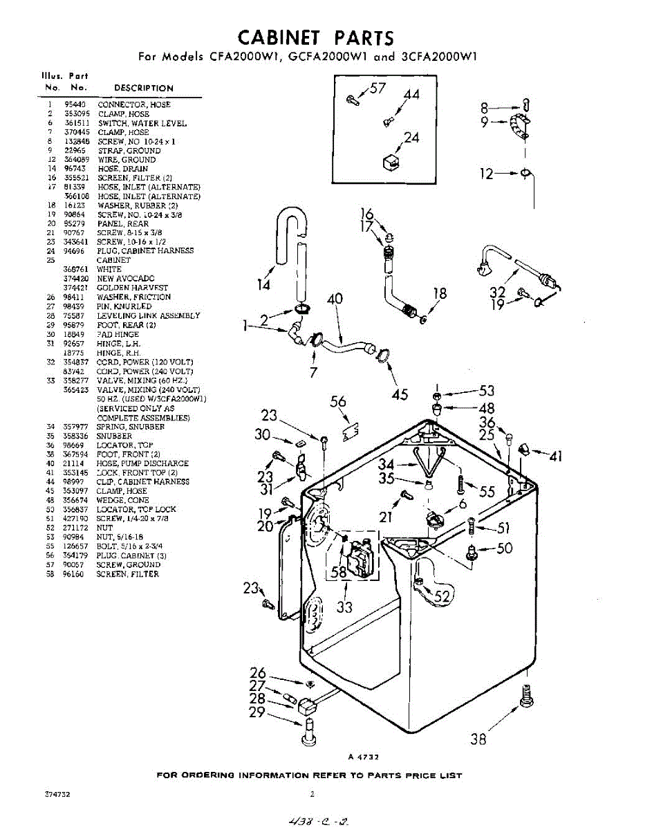 Parts for Whirlpool CFA2000W1: 02 - Cabinet Parts