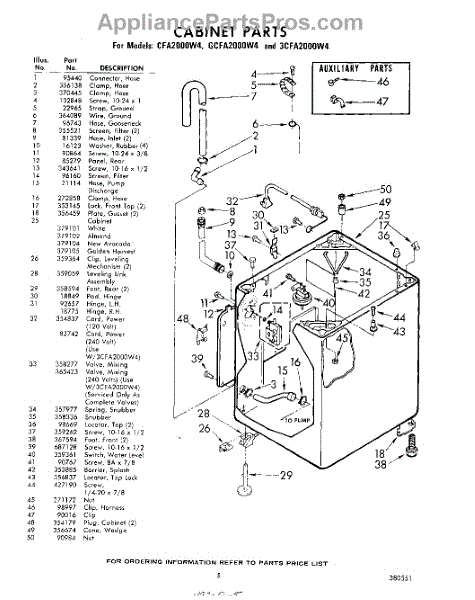 Parts for Whirlpool CFA2000W4: 05 - Cabinet Parts