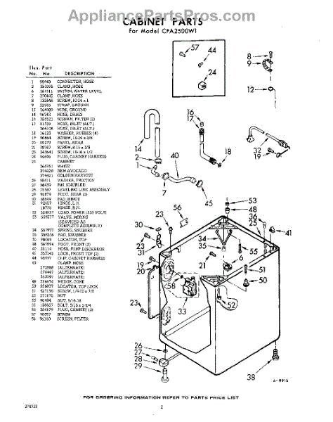 Parts for Whirlpool CFA2500W1: 02 - Cabinet Parts