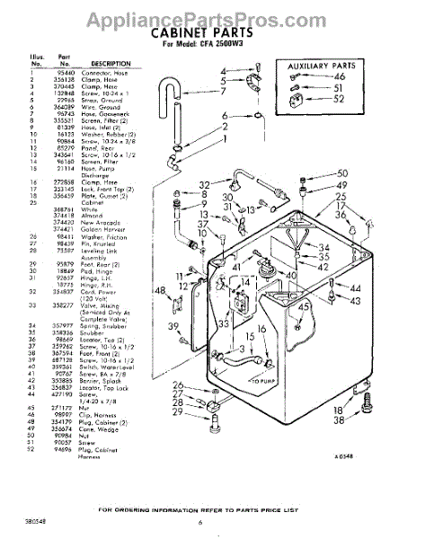 Parts for Whirlpool CFA2500W3: 06 - Cabinet Parts