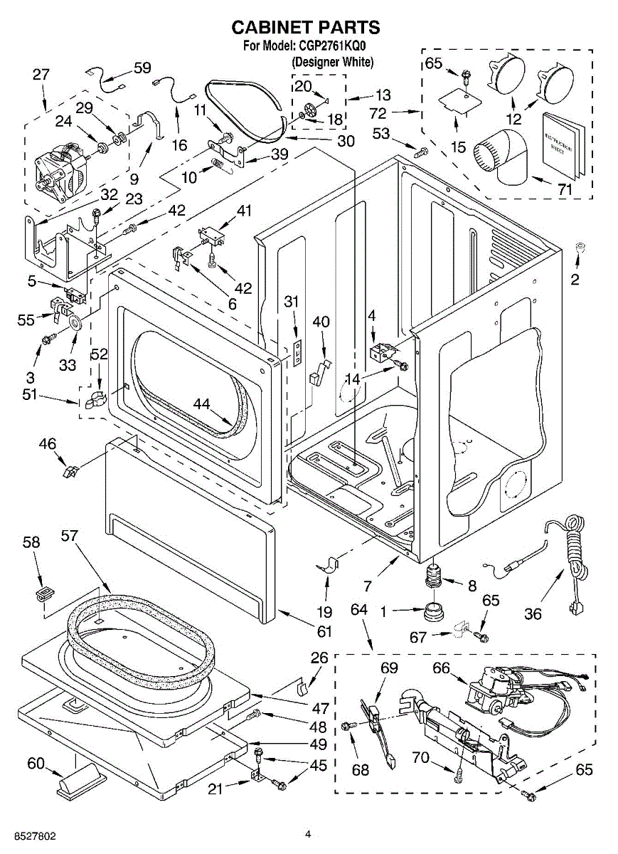 Cabinet housing for dryers. This outer shell encases internal components. Replace if cracked, rusted, dented, or structurally damaged from impact or wear.