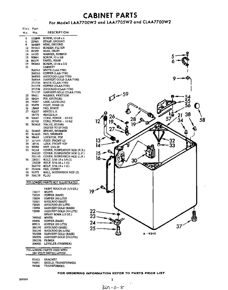 Parts for Whirlpool CLAA7700W2: 02 - Cabinet Parts