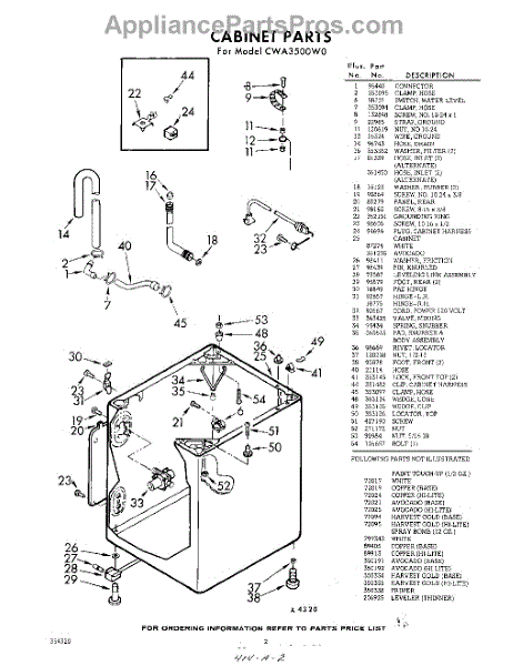 Parts for Whirlpool CWA3500W0: 02 - Cabinet Parts
