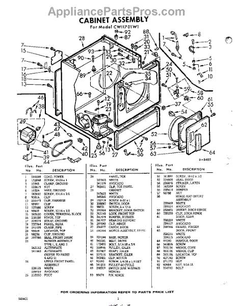 Parts for Whirlpool CWI1701W1: 02 - Cabinet Parts