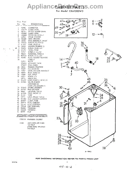 Parts for Whirlpool CXA1300W3: 02 - Cabinet Parts