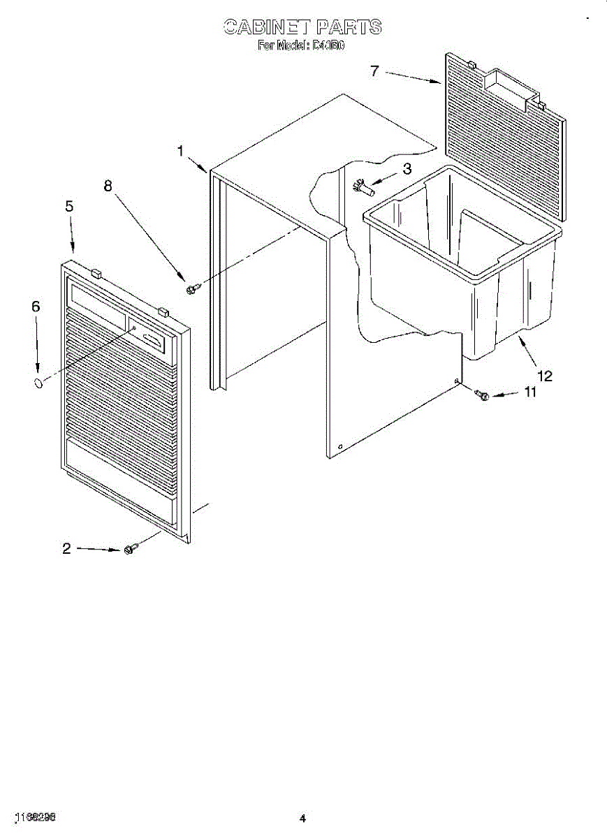 Parts for Whirlpool D40B0: 04 - Cabinet Parts