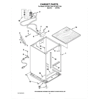 Parts for Whirlpool DP1040XTXB4: 11 - Cabinet Parts