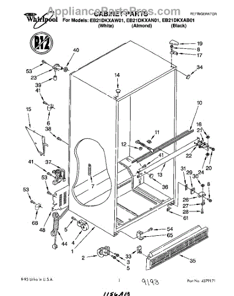 The Hinge Washer is an OEM replacement part for Whirlpool refrigerators. This small washer plays a supports the refrigerator door hinge assembly. Center hinge plastic washer. Causes of a bad hinge washer are generally normal wear and tear from extensive use. As the washer absorbs pressure each time the door is opened or closed, it can gradually deteriorate or crack. Physical damage is also possible if the door is accidentally struck or slammed. Symptoms of a worn or damaged hinge washer include: