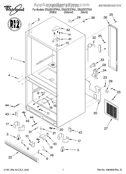 Parts for Whirlpool EB22DKXFB01: 01 - Cabinet Parts
