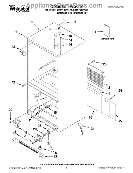 The Leveling Leg is an OEM replacement part for Whirlpool refrigerators. It is one of four legs situated internally at the base corners for proper tilt positioning. It raises or lowers each leg independently to stabilize units on uneven kitchen floors. Causes of replacement consist of wear from continual torque required during positioning processes. Thread damage or corrosion buildup attributable to floor locations over extended use necessitates periodic renewal as well. Symptoms involve: