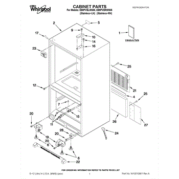 The Leveling Leg is an OEM replacement part for Whirlpool refrigerators. It is one of four legs situated internally at the base corners for proper tilt positioning. It raises or lowers each leg independently to stabilize units on uneven kitchen floors. Causes of replacement consist of wear from continual torque required during positioning processes. Thread damage or corrosion buildup attributable to floor locations over extended use necessitates periodic renewal as well. Symptoms involve: