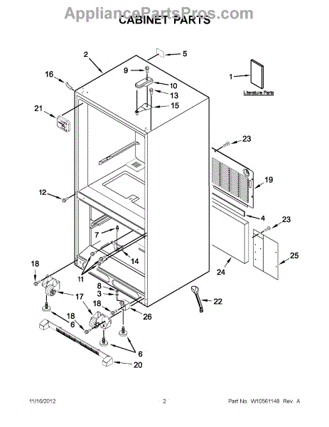 The Leveling Leg is an OEM replacement part for Whirlpool refrigerators. It is one of four legs situated internally at the base corners for proper tilt positioning. It raises or lowers each leg independently to stabilize units on uneven kitchen floors. Causes of replacement consist of wear from continual torque required during positioning processes. Thread damage or corrosion buildup attributable to floor locations over extended use necessitates periodic renewal as well. Symptoms involve: