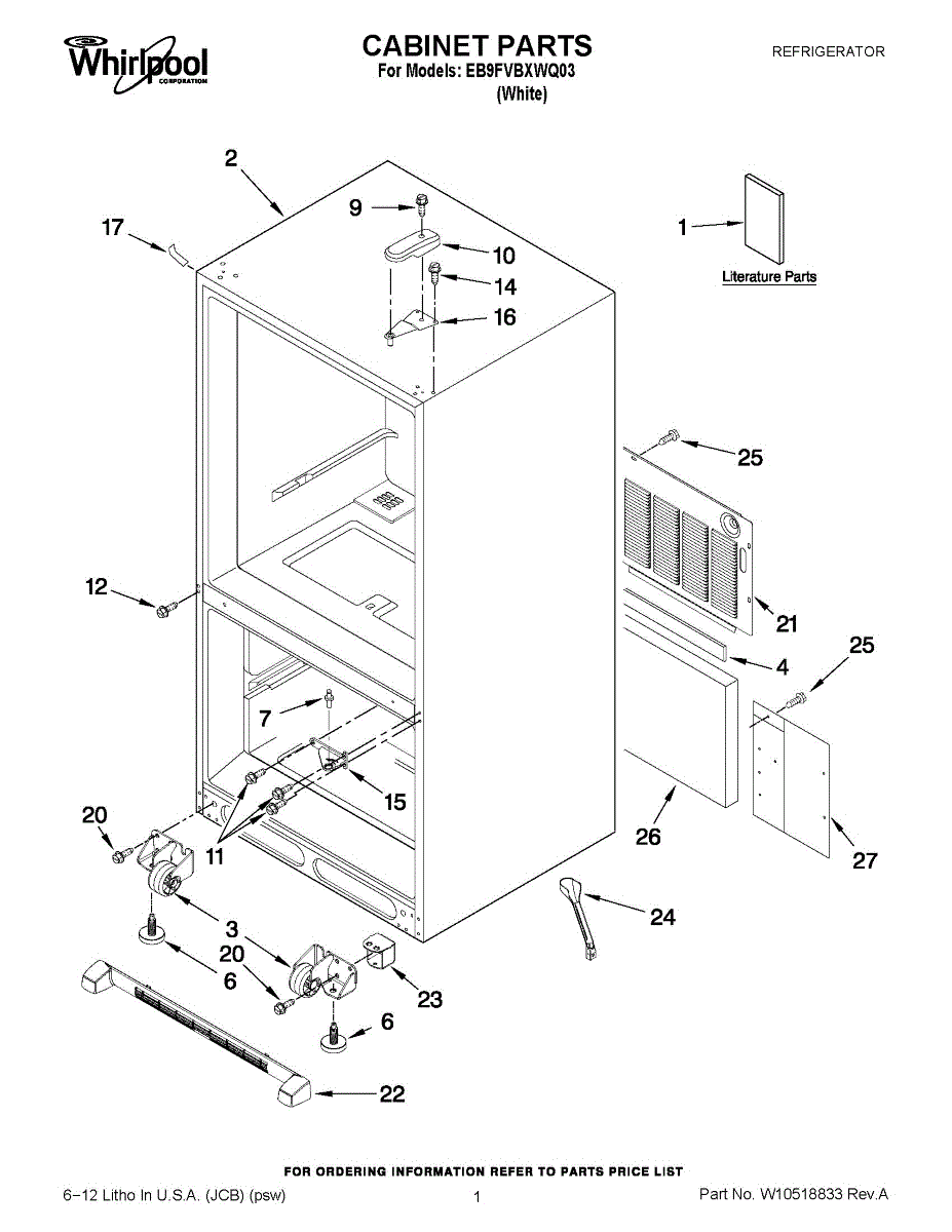 The Roller Assembly is an OEM part for Whirlpool refrigerators. It contains heavy-duty ball bearing rollers located along the bottom front-right cabinet. Repeatedly maneuvering fully-loaded refrigerators can cause cabinet rollers to crack or bearing ra