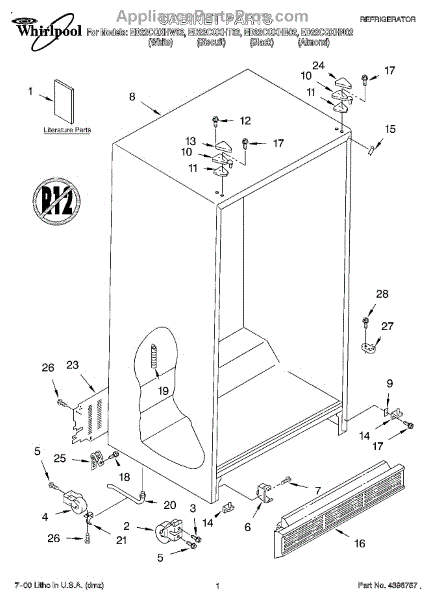 Parts for Whirlpool ED22CQXHW02: 01 - Cabinet, Literature Parts