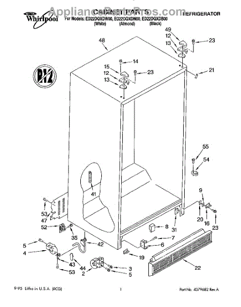 Parts for Whirlpool ED22DQXDB00: 01 - Cabinet Parts