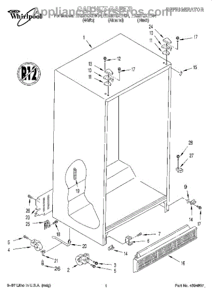 Parts for Whirlpool ED22DQXEW04: 01 - Cabinet Parts