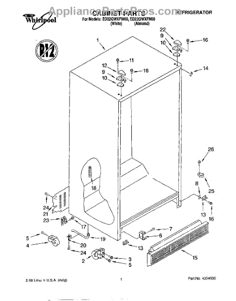 Parts for Whirlpool ED22GWXFN00: 01 - Cabinet Parts