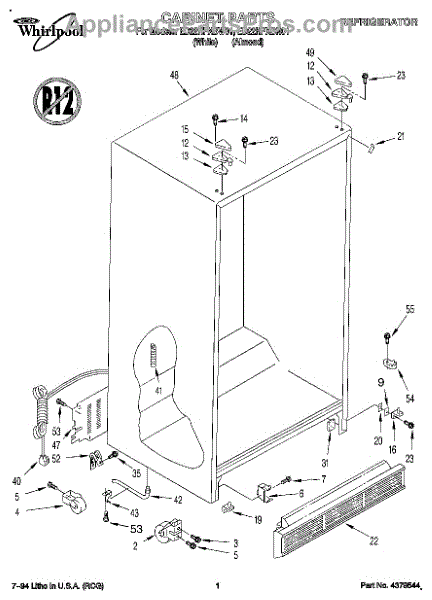 Parts for Whirlpool ED22HPXBW01: 01 - Cabinet Parts
