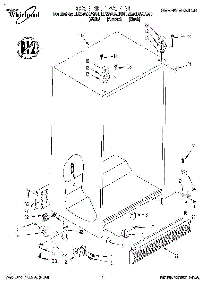 Parts for Whirlpool ED25DSXDB01: 01 - Cabinet Parts