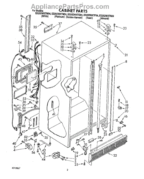 Parts for Whirlpool ED25DWXTF04: 02 - Cabinet Parts