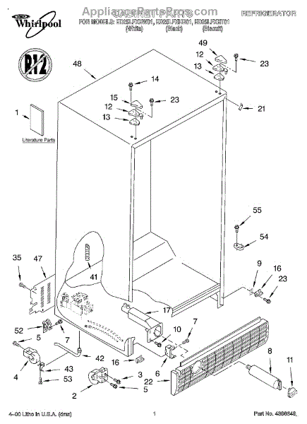 Parts for Whirlpool ED25LFXHW01: 01 - Cabinet, Literature Parts