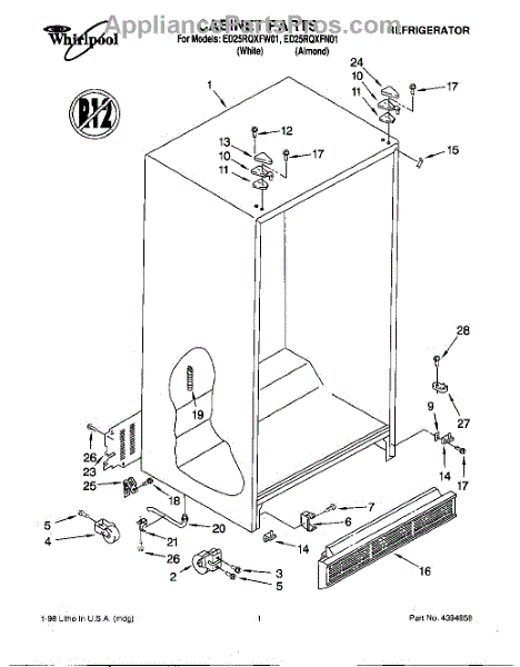 Parts for Whirlpool ED25RQXFW01: 01 - Cabinet Parts