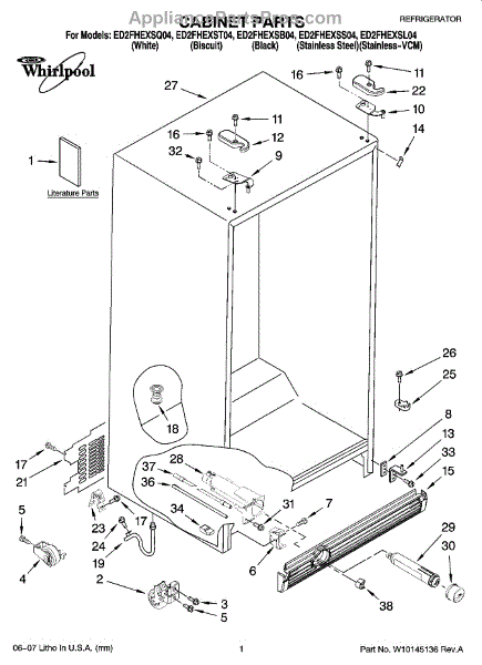 Parts for Whirlpool ED2FHEXST04: 01 - Cabinet Parts