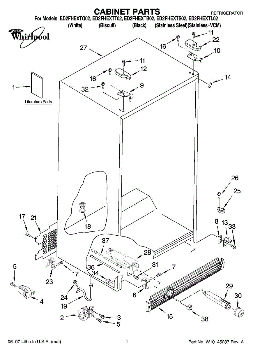 Parts for Whirlpool ED2FHEXTB02: 01 - Cabinet Parts