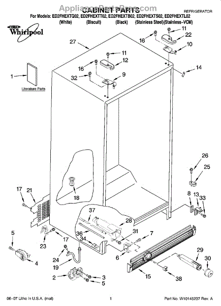 Parts for Whirlpool ED2FHEXTL02: 01 - Cabinet Parts