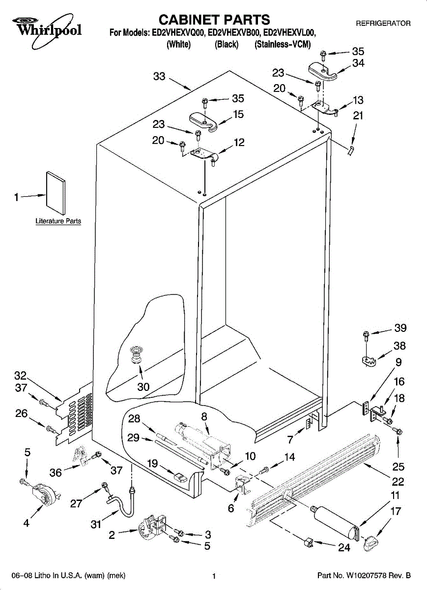 Mounting screw secures panels, brackets, and trim on refrigerators and washers. Replace when fasteners are missing, loose, stripped, or damaged.