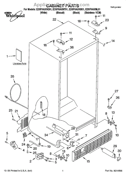 Parts for Whirlpool ED5FHAXNT01: 01 - Cabinet Parts