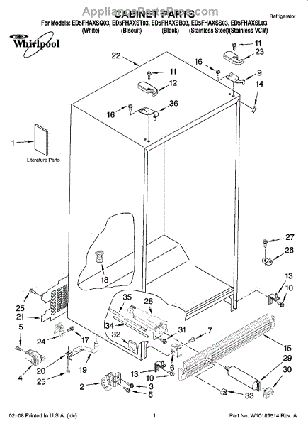 Parts for Whirlpool ED5FHAXST03: 01 - Cabinet Parts
