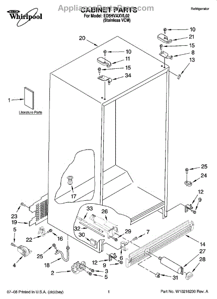 Parts for Whirlpool ED5HVAXVL02: 01 - Cabinet Parts
