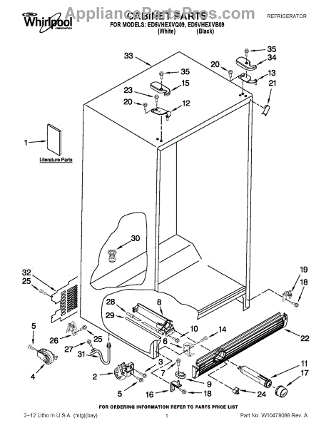 Parts for Whirlpool ED5VHEXVB09: 01 - Cabinet Parts