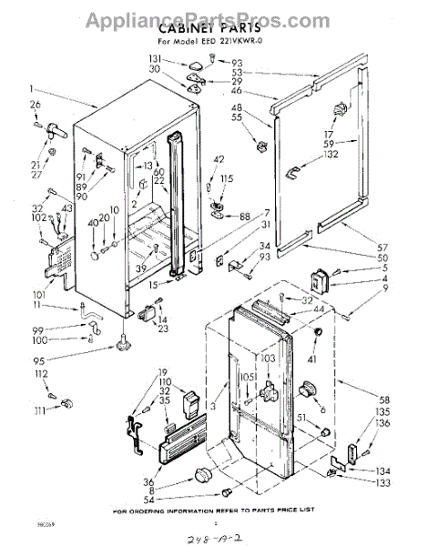 Parts for Whirlpool EED221VKWR0: 02 - Cabinet Parts