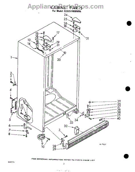 Parts for Whirlpool EED251MMWR4: 02 - Cabinet Parts