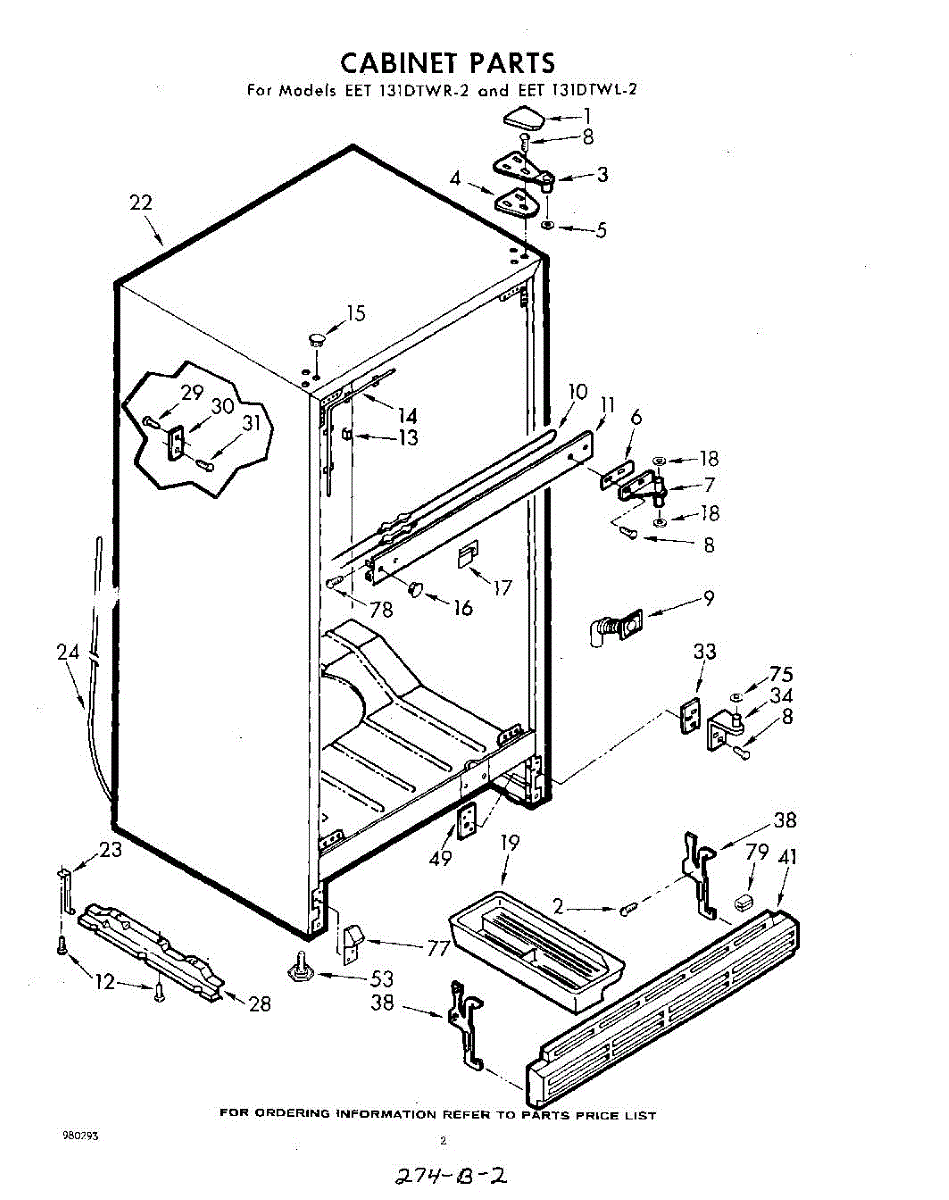 Parts for Whirlpool EET131DTWR2: 02 - Cabinet Parts