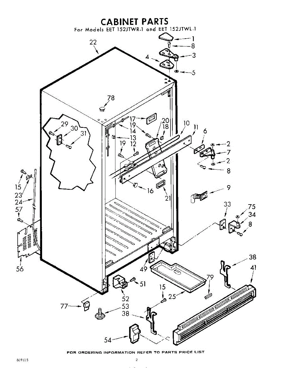 Parts for Whirlpool EET152JTWR1: 02 - Cabinet Parts