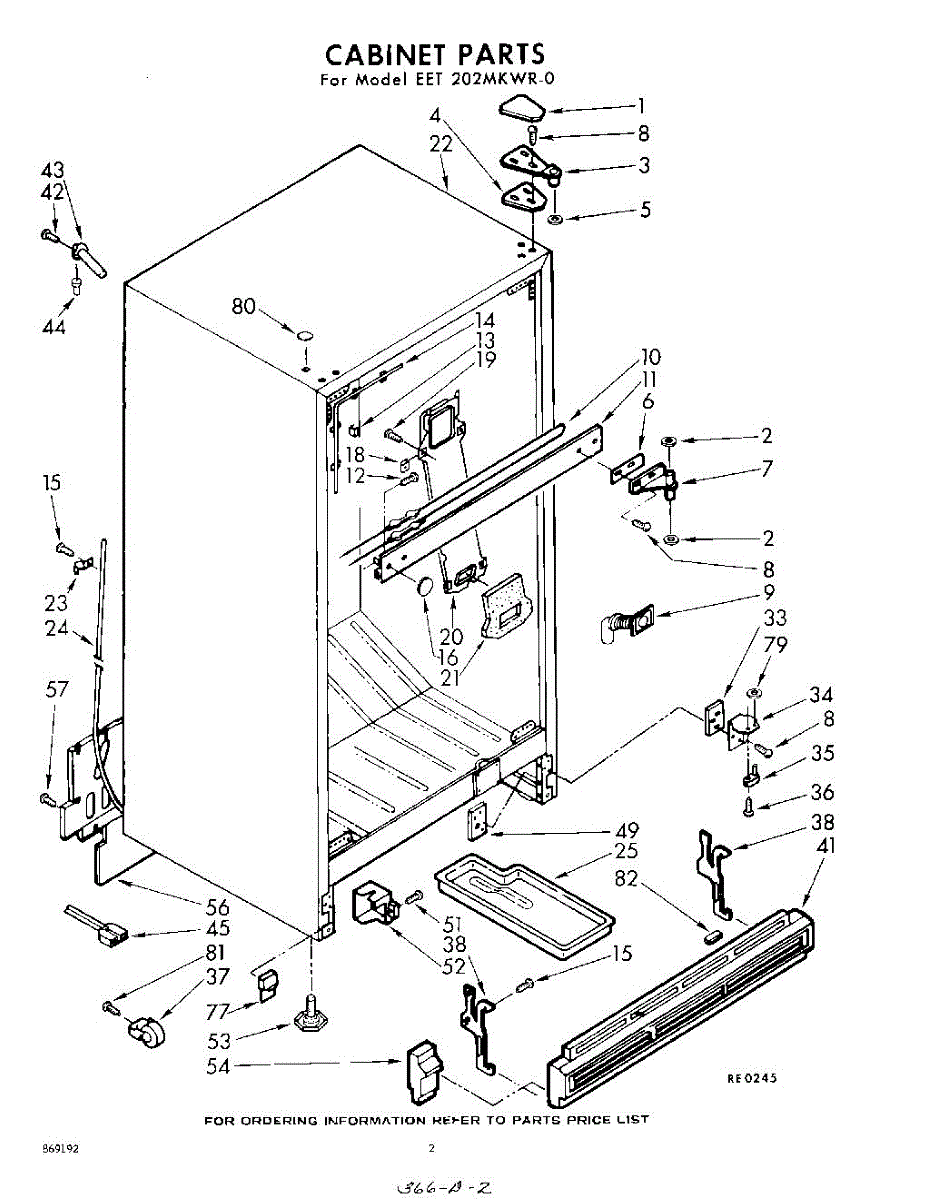 Parts for Whirlpool EET202MKWR0: 02 - Cabinet Parts