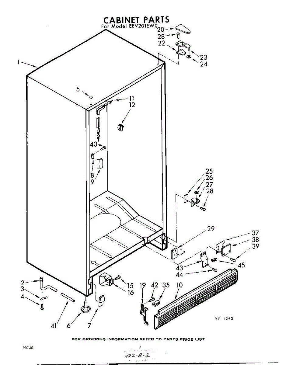 Parts for Whirlpool EEV201EW0: 02 - Cabinet Parts