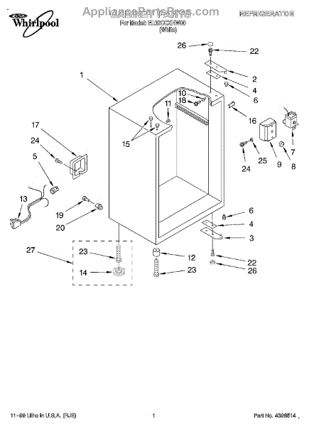 This factory screw secures appliance components to their mounting points. Replace missing, worn, or stripped hardware to restore a tight fit, proper alignment, and quieter operation across the affected assembly.