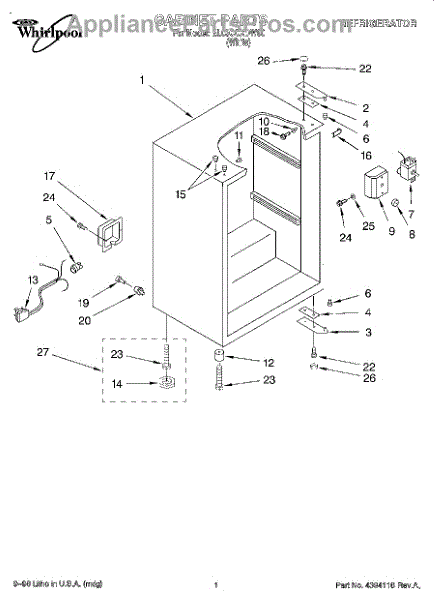 This factory screw secures appliance components to their mounting points. Replace missing, worn, or stripped hardware to restore a tight fit, proper alignment, and quieter operation across the affected assembly.