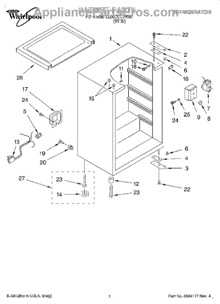 This factory screw secures appliance components to their mounting points. Replace missing, worn, or stripped hardware to restore a tight fit, proper alignment, and quieter operation across the affected assembly.